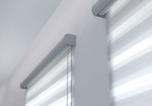 Кассетные и Зебра кассетные. Вал уменьшенного диаметра закрыт кассетой (коробом). Полотно удерживается направляющими планками, края ткани тем самым защищены от смятия. Отсутствие щелей гарантирует максимальное затемнение.